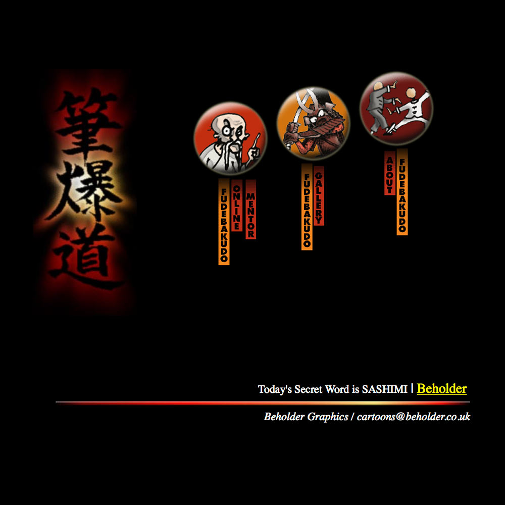 Snapshot of the Fudebakudo website from 1999. Yes, the advisor (originally called the mentor) has been telling people which martial art they should be doing for decades! Fudebakudo already existed offline (it appeared as a regular item in the fortnightly broadsheet “cartoon newspaper” The Cartoonist in 1993), but the book wasn’t published until 2003. This is the earliest version of Fudebakudo.com I can find, from the Wayback Machine internet archive.